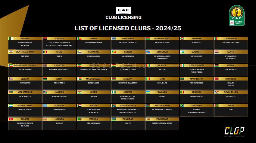 وحسب بلاغ الإتحاد الأفريقي، فقد تم الترخيص لما مجموعه 58 ناديا من 46 اتحادا عضوا في الاتحاد الأفريقي لكرة القدم، للمشاركة في دوري أبطال أفريقيا، بينما حصل ما مجموعه 51 ناديا يمثلون 40 اتحادا عضوا على الترخيص لخوض غمار كأس الكونفدرالية