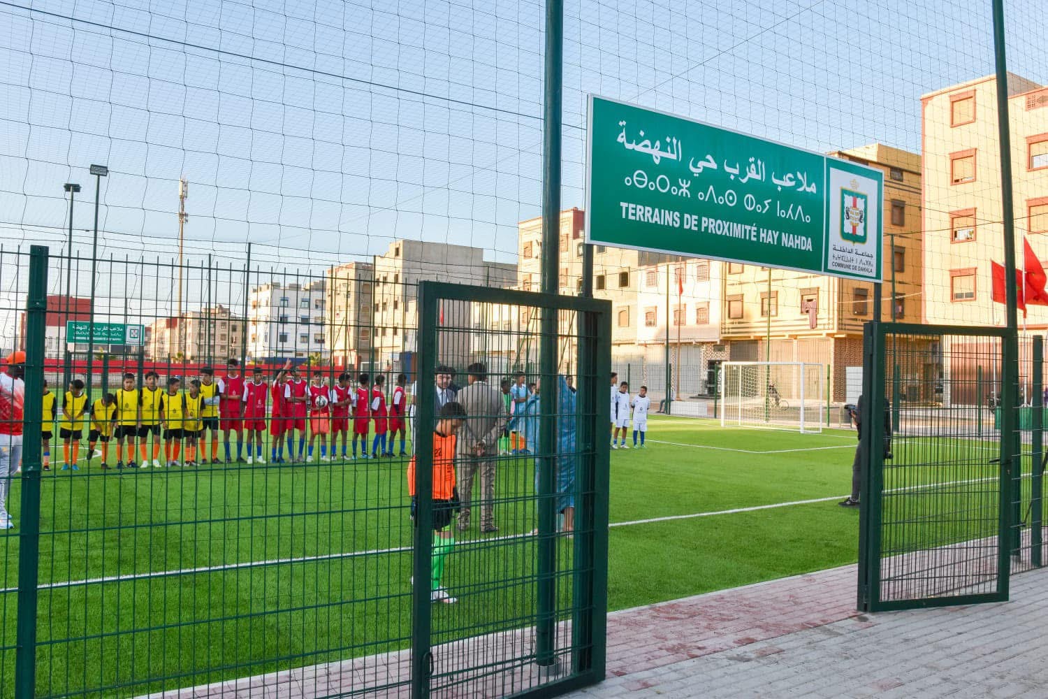 وبهذه المناسبة أعطيت الانطلاقة الفعلية لملاعب قرب بكل من حي الأمل وحي النهضة وحي السلام،بالإضافة الى اعطاء انطلاقة الشروع في إعادة تأهيل المسبح البلدي في إطار شراكة تجمع بين جماعة الداخلة ووزارة التربية الوطنية والتعليم الأولي.