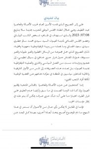على إثر التصريح الذي قدمه الأمين العام لحزب الأصالة والمعاصرة عبد اللطيف وهبي خلال انعقاد المجلس الوطني للحزب، بمدينة سلا بتاريخ 08/07/2023 والذي استهدف في ظاهره شخص النائب البرلماني وعضو المجلس الجماعي لمدينة العيون، السيد سيدي محمد سالم خطري سيدي سعيد الجماني وما يحمله من رمزية تاريخية،وطنية ،جهوية ومحلية، ذلك التصريح الذي حمل مجموعة من الرسائل الخطيرة والغير مقبولة والغير مسبوقة، حَوَرَتْ النقاش حول قرار حزبي خاطئ في سياق تنظيمي، إلى هجوم ومزايدات مست من الفعل السياسي والحزبي والعملية الديمقراطية بمدينة العيون، بل تعدت هذه التصريحات إلى المس من الأدوار التاريخية والحالية لفاعلين سياسيين في المنطقة في معركة دفاعهم عن القضية الوطنية لكافة أفراد الشعب المغربي.